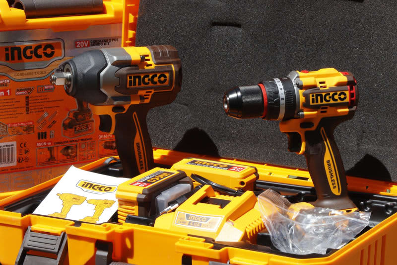 Maletin marca INGCO con Pistola de 850NM y taladro de 96NM con sistema Brushless con broca de 13mm , incluye cargador y baterías de 20V 12 meses de garantia