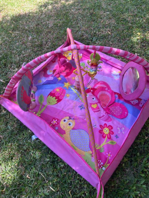 caminador multiactividad. incluye 2 tableros de actividades, uno de ellos con piano musical con diferentes modalidades (con pilas aa) y otra con elementos de diferentes texturas. tiene asiento giratorio 360 grados: en la medida que el bebé gira, tiene distintos elementos para jugar con diferentes texturas y actividades. tiene función de balanceo para que se pueda usar antes del bebé ambulante, 3 posiciones de altura para acomodar el caminador en la medida que el bebé crece y una base con 4 rueda