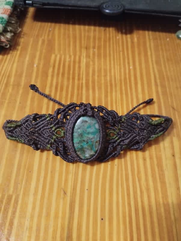 Brazalete tejido con hilo encerado brasileño,pieza única, el mineral es una crisocola 💎 de Perú